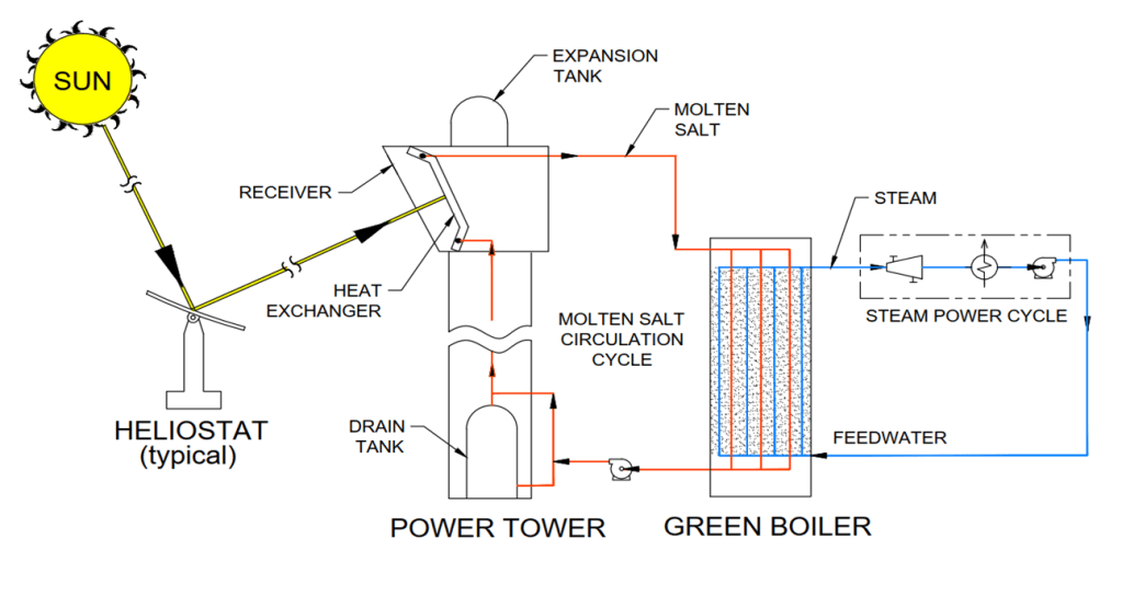 We are pleased to announce the development of a highly efficient system to coax a continuous or on-demand supply of electric power from the sun eliminating the intermittency that has forever hobbled solar plants. This success stands on conjugating two of Holtec International’s recent major innovations, HI-THERM CSP and the Green Boiler.