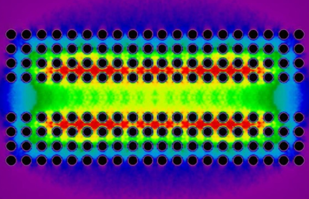 Holtec Government Services performs criticality safety analyses and evaluations of fissile materials such as processes and fuel assemblies used in nuclear reactors, radiation shielding analyses for spent fuel and other radioactive materials, and core design calculations, using state-of-the-art codes such as MCNP, SCALE and CASMO/SIMULATE. Criticality safety analyses cover a large range of condition. They are performed for various fuel designs (PWR, BWR, VVER), for wet storage conditions (spent fuel pool) and dry storage/transportation casks, for fresh fuel and spent fuel (utilizing NRC approved burnup credit methodologies), and include both UO2 and MOX fuel. These calculations are performed as part of safety analyses reports and to optimize existing and new designs of storage and transportation system from a criticality safety perspective. As an example, the figure below shows the neutron flux distribution from fission processes a cross section of a spent fuel transport cask loaded with content of different reactivity in different cells.