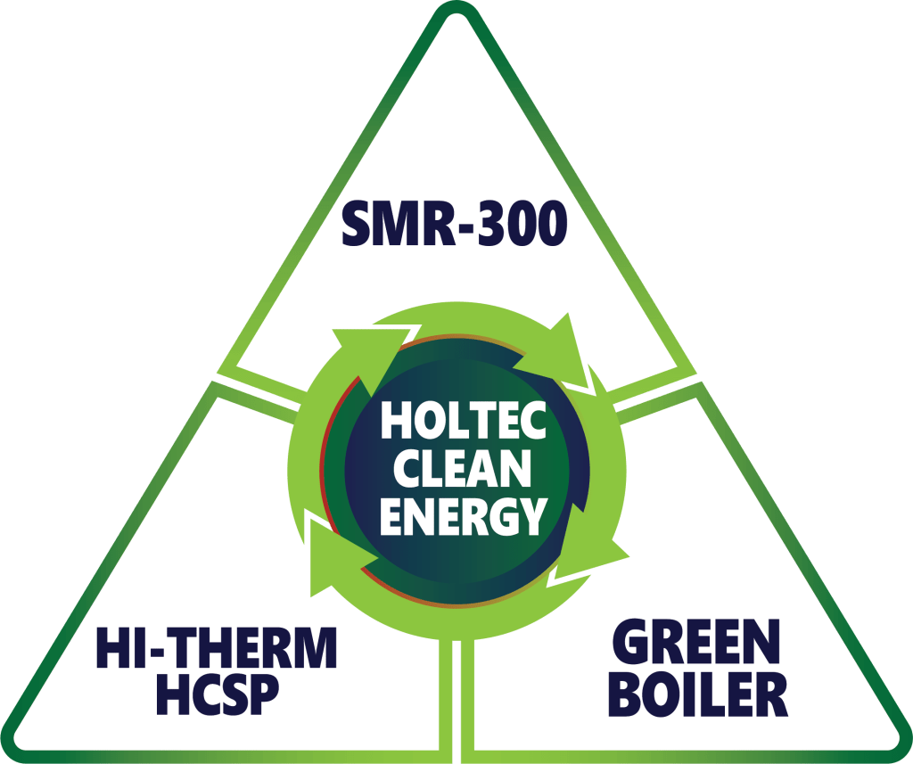 The Holtec Clean Energy Triad combines two distinct green energy sources with a third system that can harness power, either by storing it or converting it to superheated steam. SMR-300™ generates at least 300 megawatts of nuclear power. HI-THERM HCSP can capture at least 700 MW per day from the sun. The Green Boiler collects and stores energy from these two power sources for on-demand use. With a charged Green Boiler on stand-by, SMR-300™ is “black start” capable, meaning it will not need any offsite power for start-up. If a sufficient amount of land is available then the solar plant can be equipped with its own turbogenerator to produce electricity. The Clean Energy Triad uses a space-efficient footprint and fewer natural resources.